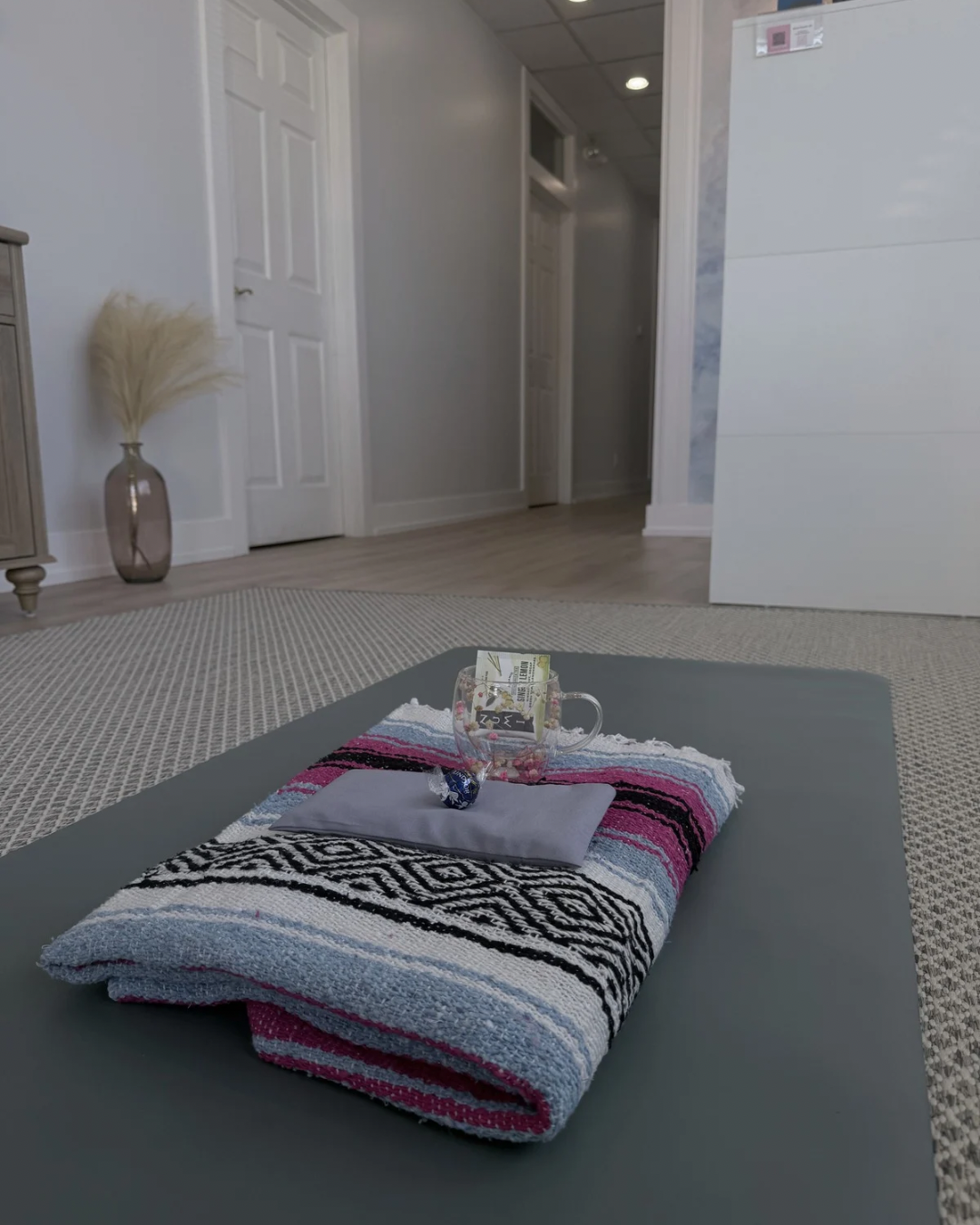 Mats, pillows, blankets, and post tea and snacks provided.